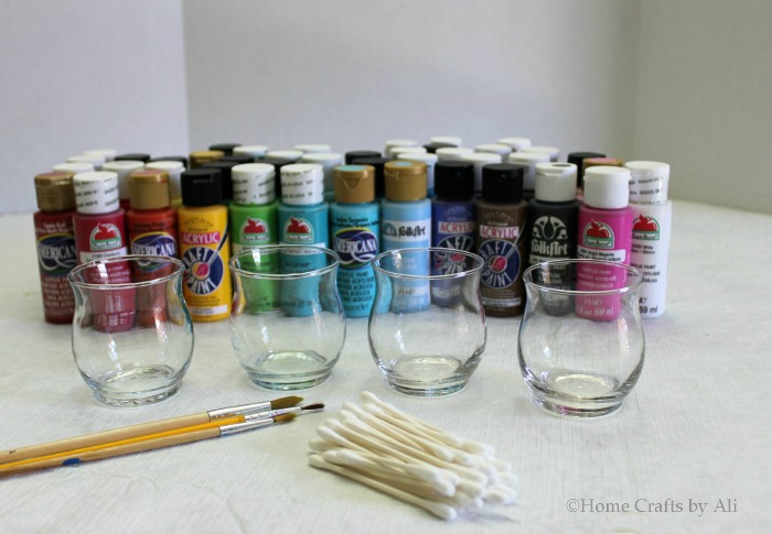 During the summer I let my girls pick out some art projects to work on. They always see me painting and wanted to do a project for themselves. We found these little votive holders at a yard sale and my girls asked if they could decorate them. I thought it would be a fun project, so we got out our paints.
