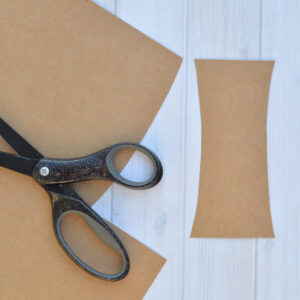1. To get started on your cupcake liner apple tree craft, cut a trunk for the tree from brown paper and glue it to the blue paper.